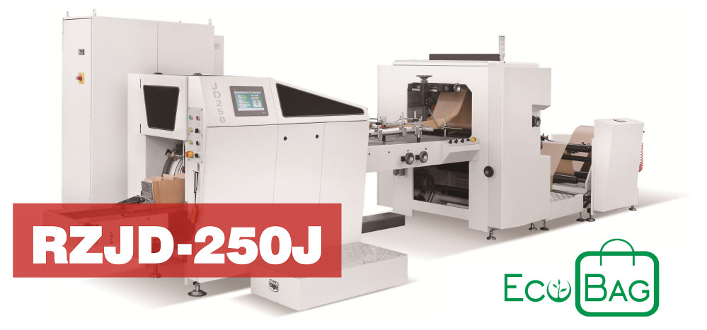 A EcoBag RZJD-250J é capaz de fazer sacos de papel de até 250 mm de largura e 460 mm de comprimento de corte, pefeita para fabricar sacos sacolas de pequenos e médio porte. É adequada para uma variedade de aplicações, desde alimentos, farmácias, a varejo e setores industriais. Faz sacos de papel com ou sem reforço. Com reforço máximo de 120 mm facilmente ajustável na máquina. Não importa o tipo de papel comum ou impresso, ele pode funcionar perfeitamente com seu design Servotech avançado e com a configuração de registro de fotocélula. Usado na produção de uma variedade de sacos de papel, sacos de pão com janela, sacos de comida fast food, sacos de pão, sacos de frutas secas entre outros sacos de papel ecológicos.