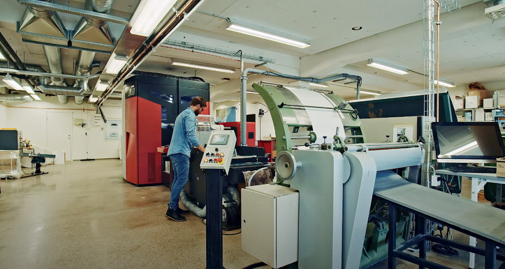A nossa produção envolve maquinaria moderna de papéis de parede que se aplica à tecnologia de impressão digital Xeikon. A nossa técnica difere da impressão tradicional de papéis de parede de várias formas. Acima de tudo, os nossos murais de parede não são limitados a um determinado número de cores ou padrões. Além disso, imprimimos sob demanda - o que significa que faremos o mural de parede especialmente para si, depois de ter feito a sua encomenda. Temos um fluxo de produção integrado, dado que os nossos sistemas computacionais foram especialmente concebidos para a produção de papéis de parede. Gerem todo o fluxo, desde as encomendas on-line até à entrega. Sendo assim, podemos orgulhosamente garantir-lhe prazos de entrega rápidos e produtos de alta qualidade”