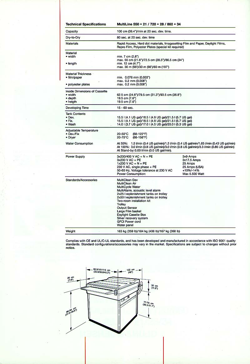 A MultiLine é ideal para o processo de rápido acesso de papéis, filmes de câmara escura e luz do dia. Todos os modelos possuem as mesmas características, exceto pela largura de entrada do material a ser processado.
